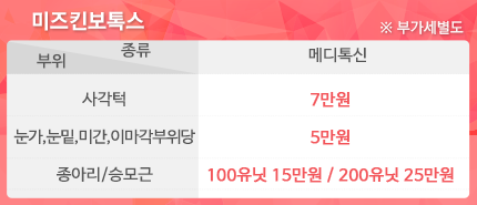 컨텐츠 시술전/후 사진, 시술후기, 배너 미즈킨 피부과 내부전경 완벽하게 세밀한 치료 노하우로 항상 고객님의 높은 만족과 결과를 위해 노력하고 있습니다. 이전 다음 news, help desk, location [미스킨클리닉]제증명발급비용 2024.06.18 [미스킨클리닉]비급여 진료비용 안내 2024.06.18 미즈킨 여름휴가 안내 2016.06.10 help desk help desk