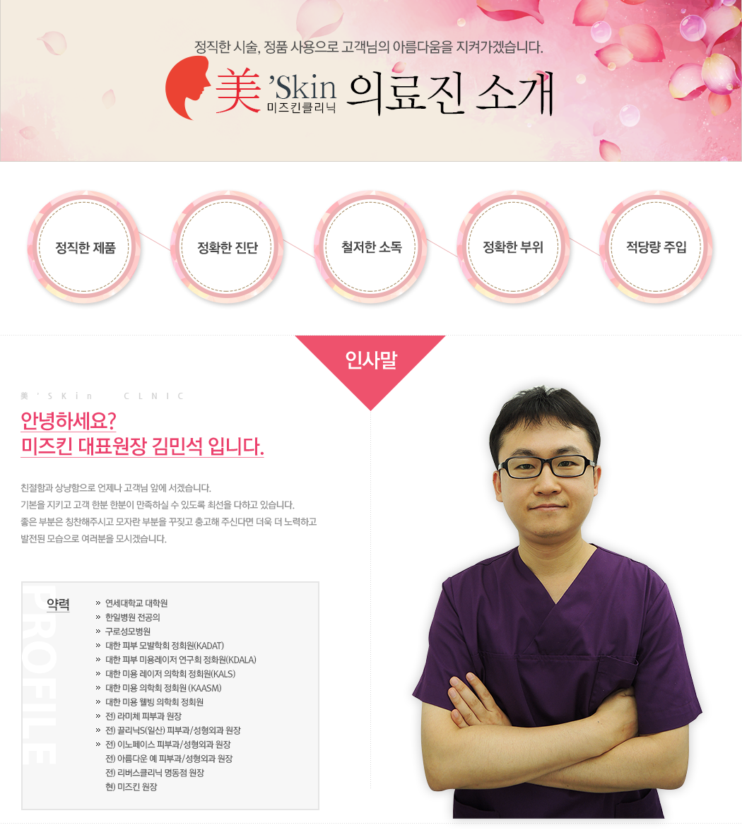 의료진 소개 최고의 고객만족을 추구하는 미즈킨입니다. 홈 > 미즈킨ABOUT > 의료진 소개 New arrival& EVENT 가격은 저렴하게, 효과는 확실하게 미즈킨의 새로운 프로그램 및 이벤트 놓치지 마세요.