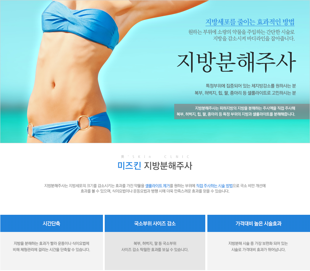 지방분해주사 최고의 고객만족을 추구하는 미즈킨입니다. 홈 > 비만클리닉 > 지방분해주사 New arrival& EVENT 가격은 저렴하게, 효과는 확실하게 미즈킨의 새로운 프로그램 및 이벤트 놓치지 마세요.