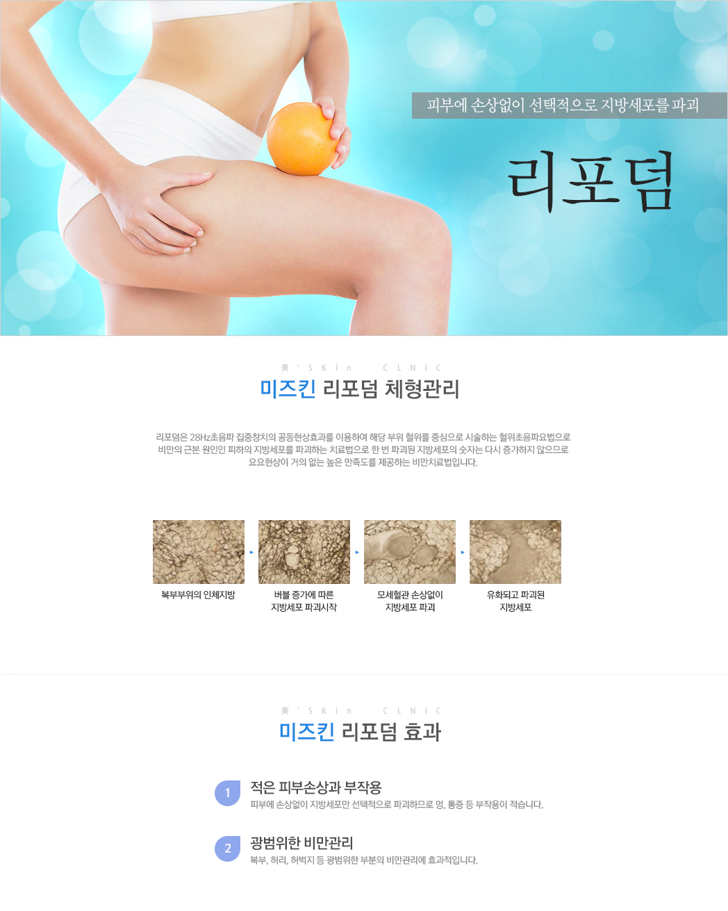 리포덤 최고의 고객만족을 추구하는 미즈킨입니다. 홈 > 비만클리닉 > 리포덤 New arrival& EVENT 가격은 저렴하게, 효과는 확실하게 미즈킨의 새로운 프로그램 및 이벤트 놓치지 마세요.